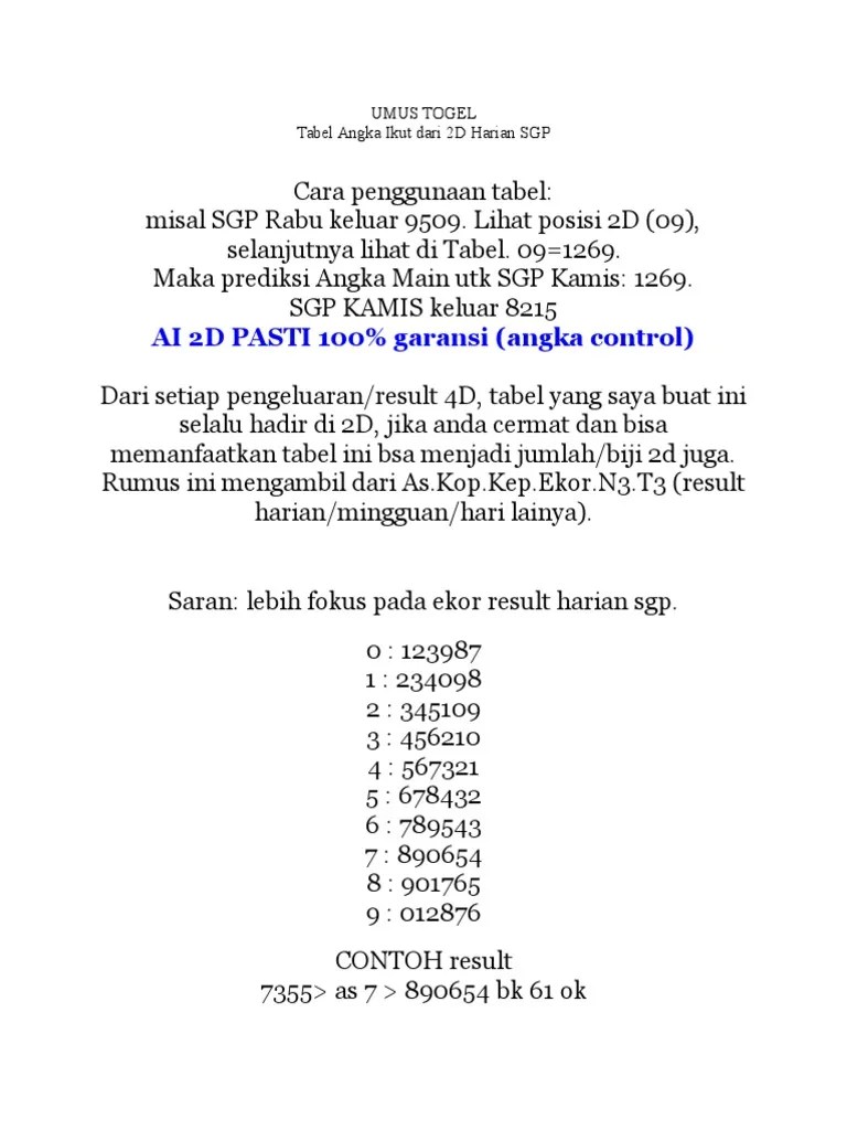 15 26 37 48 94 05 16 27 38 95 06 17 28 39 40 18 29 30 41 52 63 74 53 64 75 86 97 08 19 20 10 21 32 43 54 65 76 87 98 kepala 1, . Anda lihat pada posisi 2d (09), selanjutnya lihat di tabel . Other options click to expand contents. Angka jitu dan akurat hasil ritual yang bisa anda menangkan hari ini hub. Copypaste tabel 2d lemah no bb diambil dari jumlah 2d harian keakuratan (((((80%))))) jumlah 0= 02,06,17,19,20,28,29,33,37,46,48 55,56,59,60,64,65,66,67,71 .